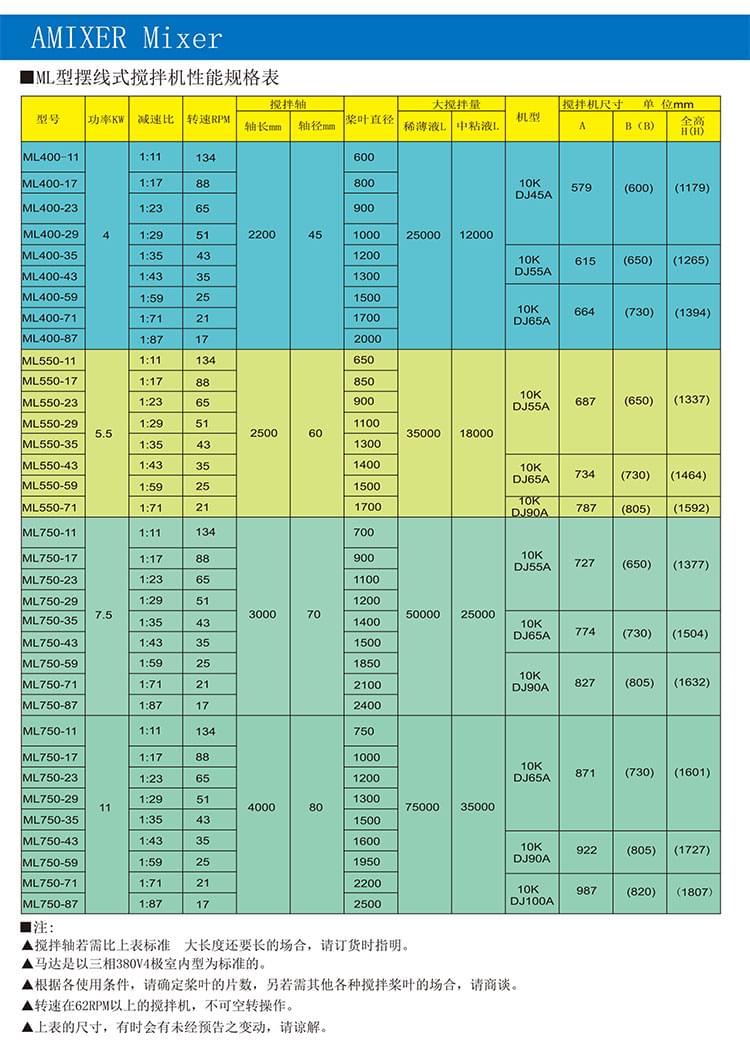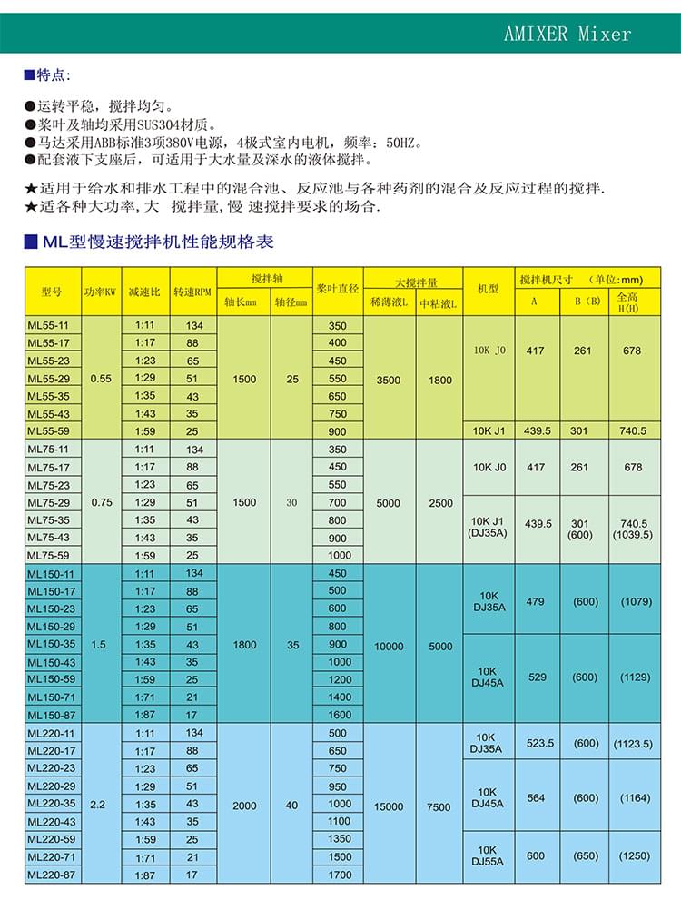 擺線式慢速攪拌機ML型特點