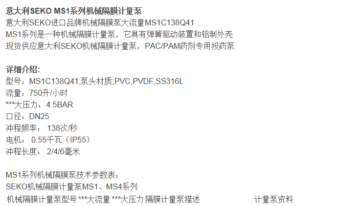 SEKO賽高M(jìn)S1系列機械隔膜計量泵