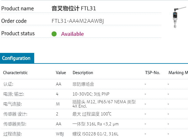 Liquiphant FTL31液體限位開關(guān)適用于所有行業(yè)測(cè)量,主要用于機(jī)械行業(yè)。Liquiphant可用于清洗、過濾系統(tǒng)以及冷卻和潤滑容器中的溢出保護(hù)和泵的空轉(zhuǎn)保護(hù)。IO-Link 功能可輕松實(shí)現(xiàn)參數(shù)設(shè)置。