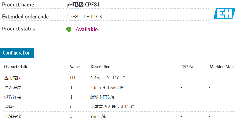 模擬式pH電極Orbipac CPF81特點:電極抗毒性,凝膠電極抗污染,采用NPT 3/4"過程連接。可選搭配放大器使用。
