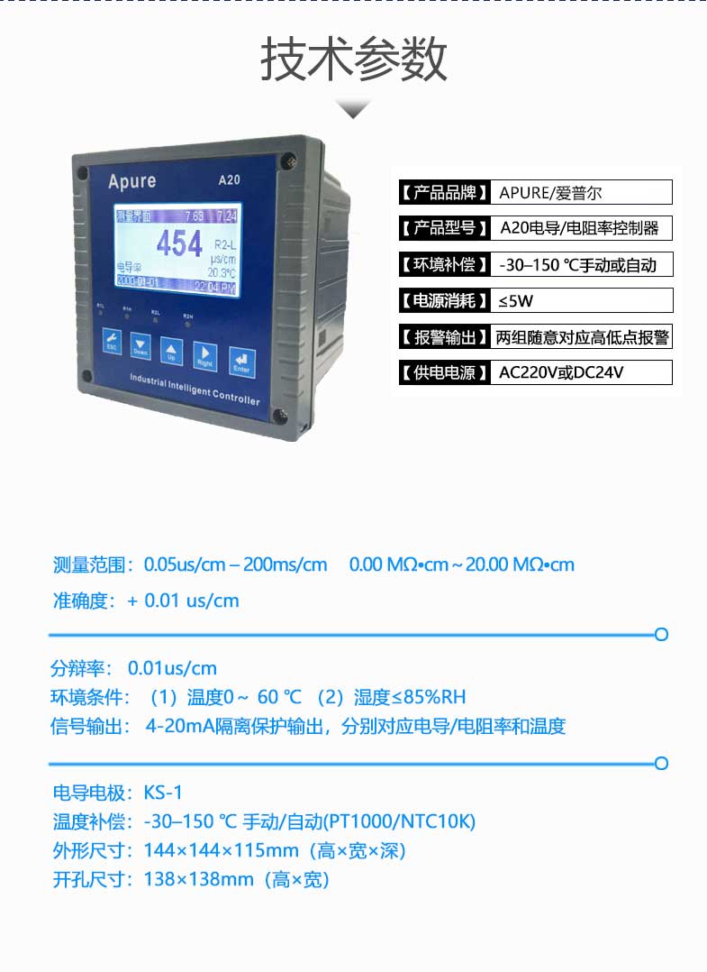 型號:Apure愛普爾電導(dǎo)率儀A20CD系列工業(yè)在線電導(dǎo)/電阻率控制器A20CD