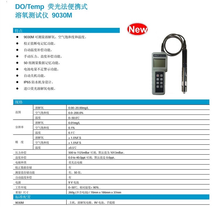 9030M型便攜數(shù)顯熒光法溶解氧測(cè)試儀