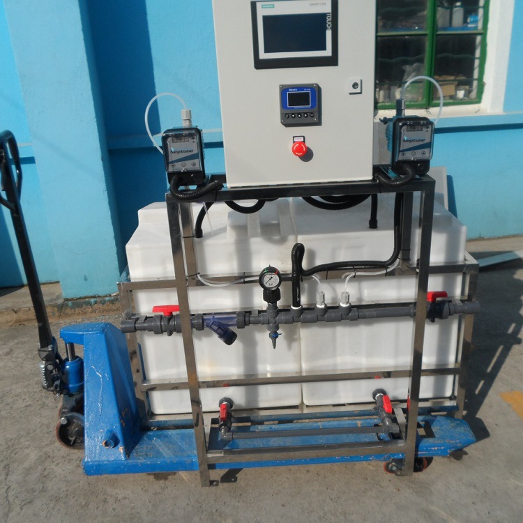 成套加藥裝置和專項成套加藥裝置有多種規(guī)格型號,產品包含一罐一泵,一罐兩泵,兩罐兩泵,兩罐三泵,三罐三泵及多罐多泵。系統(tǒng)所使用的配置是根據(jù)計量泵的數(shù)量和出口來定的,用戶可以根據(jù)工藝需要進行選擇,也可依據(jù)用戶的特殊需要來設計和生產的非定型產品。