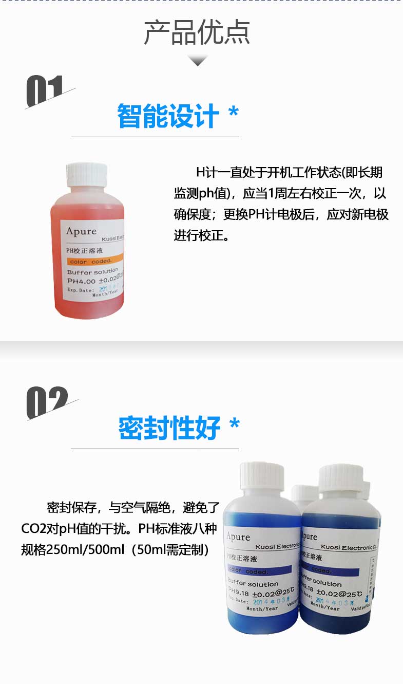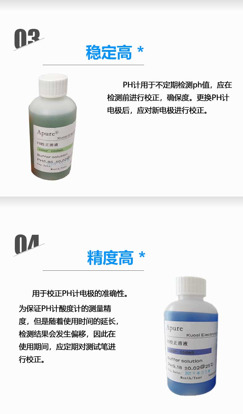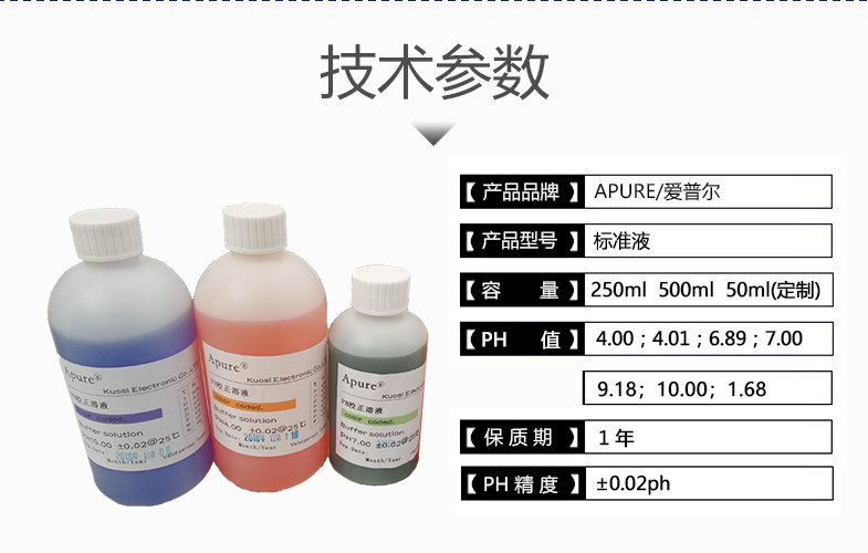 APURE愛普爾標準液酸度計探頭校正計ph儀測試500ML緩沖液