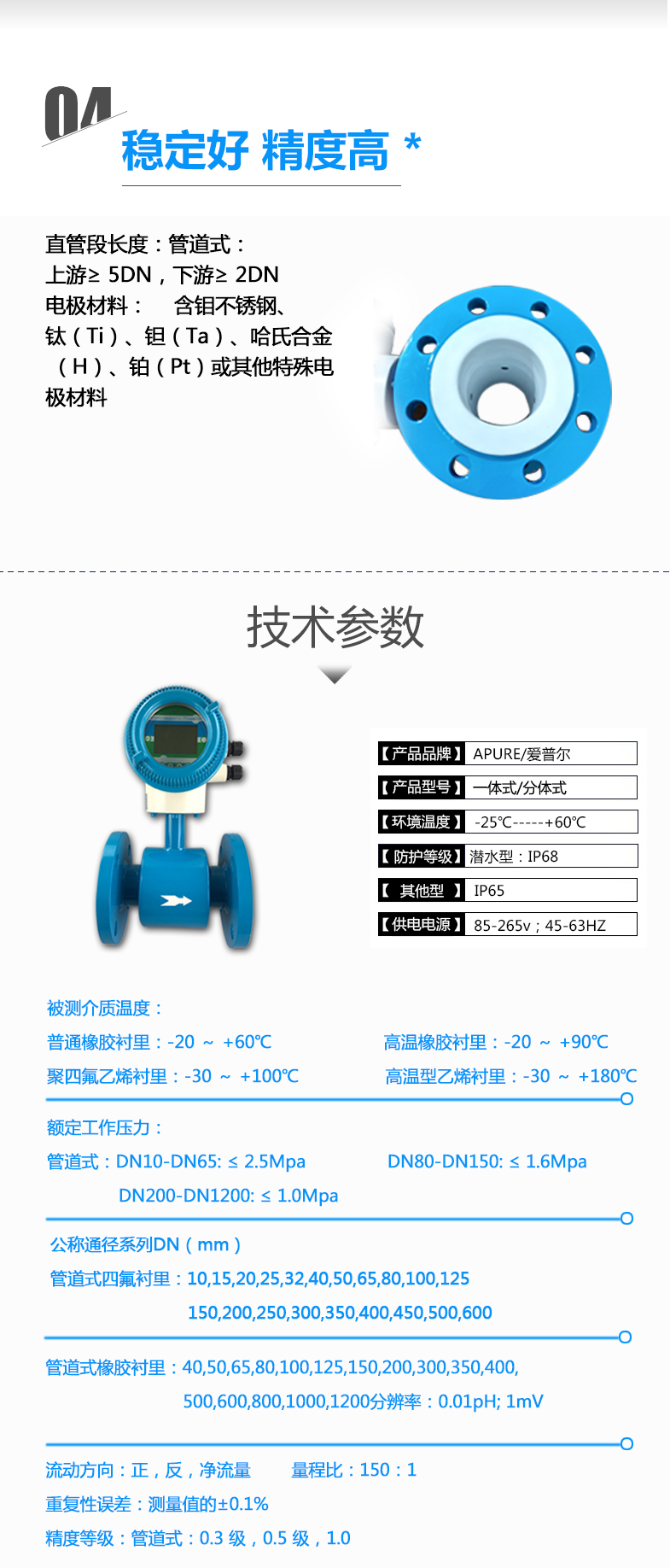 Apure愛普爾智能電磁流量計AYT一體式化工污水測量多規(guī)格可選