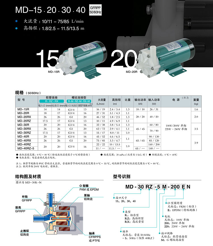 IWAKI易威奇磁力泵MD100-RM 過濾機泵 高性能磁力驅動