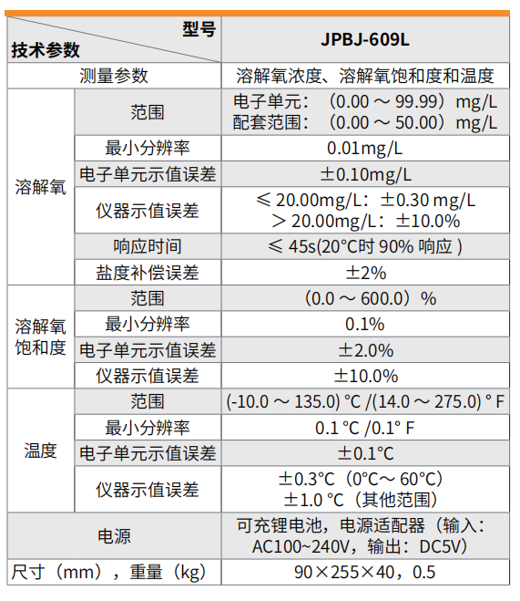 JPBJ-609L 型 便攜式溶解氧測定儀