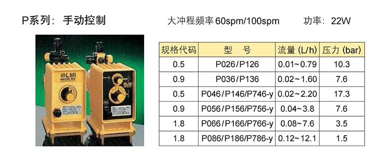 1-手動調節(jié)沖程長度及沖程頻率(手動雙調)。頻率可調范圍:P12□,P13□ 0~60spm,其余均為 0~100spm 。