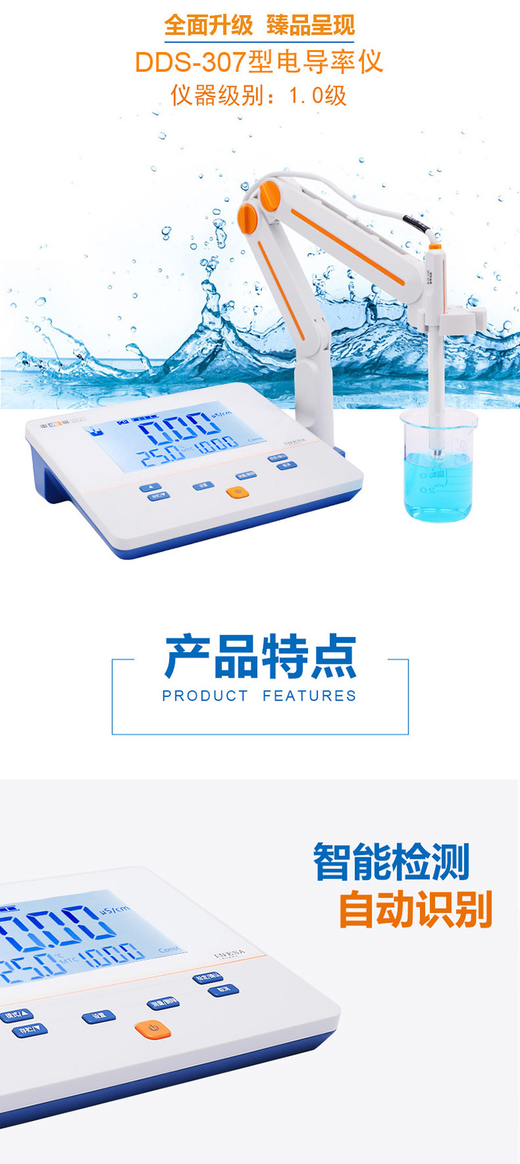 雷磁DDS-307型臺式電導率儀液晶顯示手動溫度補償電導測試儀器