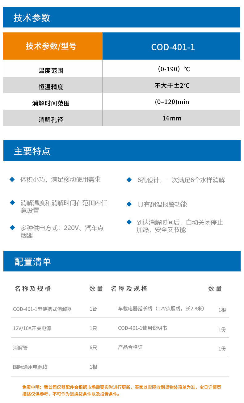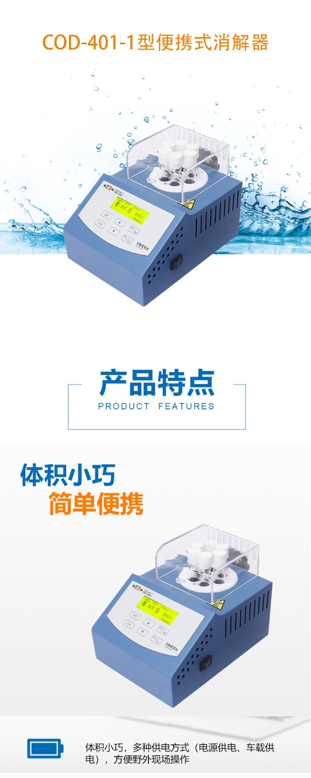 上海雷磁COD-401-1便攜式消解器體積小巧COD測(cè)定儀分析儀消解器