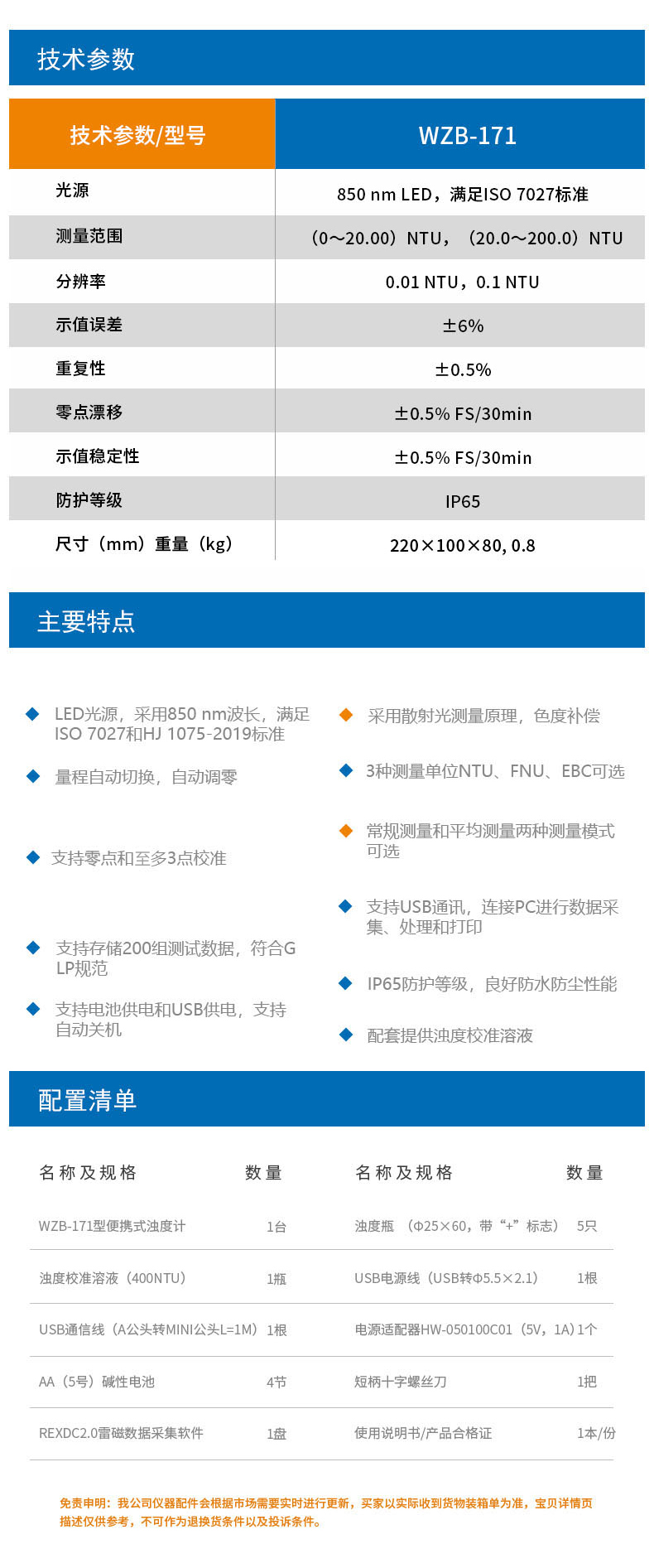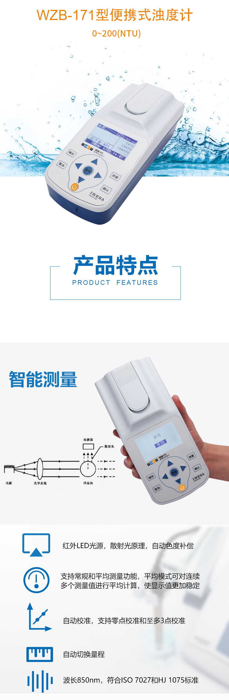 雷磁(leici)濁度儀WZB-171型便攜式濁度計分析儀標準套裝LED光源自動調零
