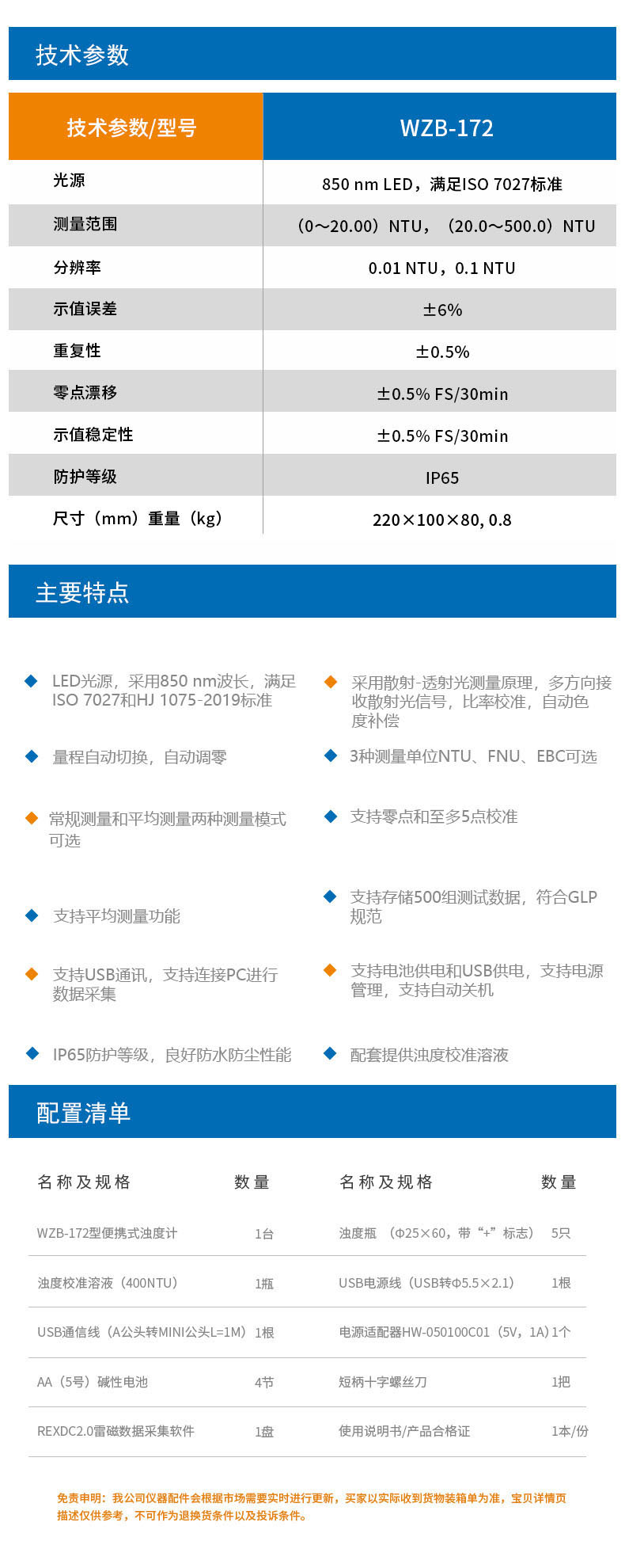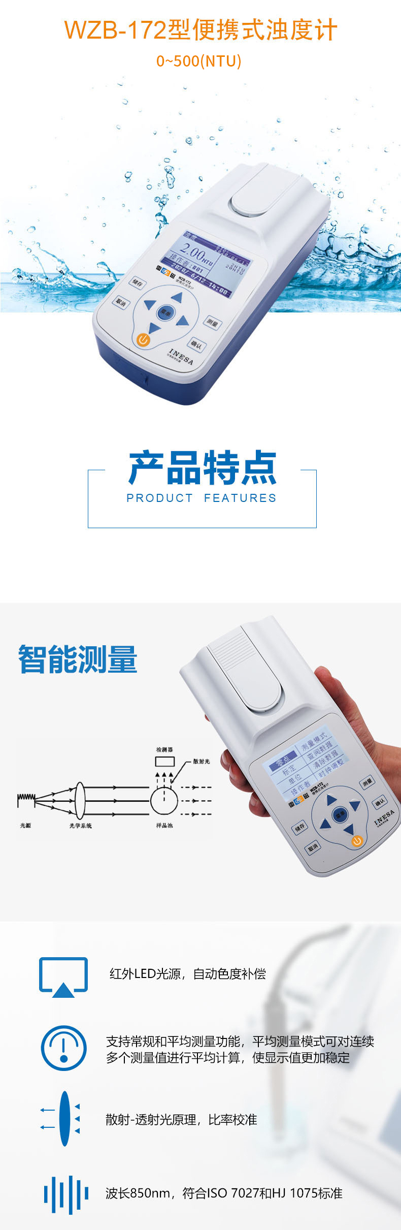 雷磁(leici) WZB-172型便攜式濁度計標準自動色度補償水質分析儀濁度儀