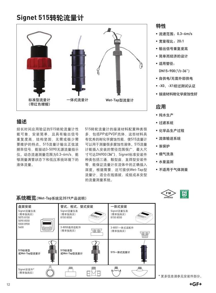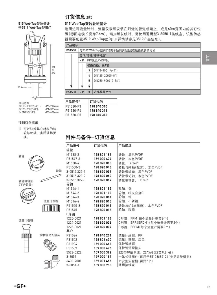 GF流量計(jì)515轉(zhuǎn)輪式流量計(jì)傳感器 純水流量測(cè)量?jī)x器探頭