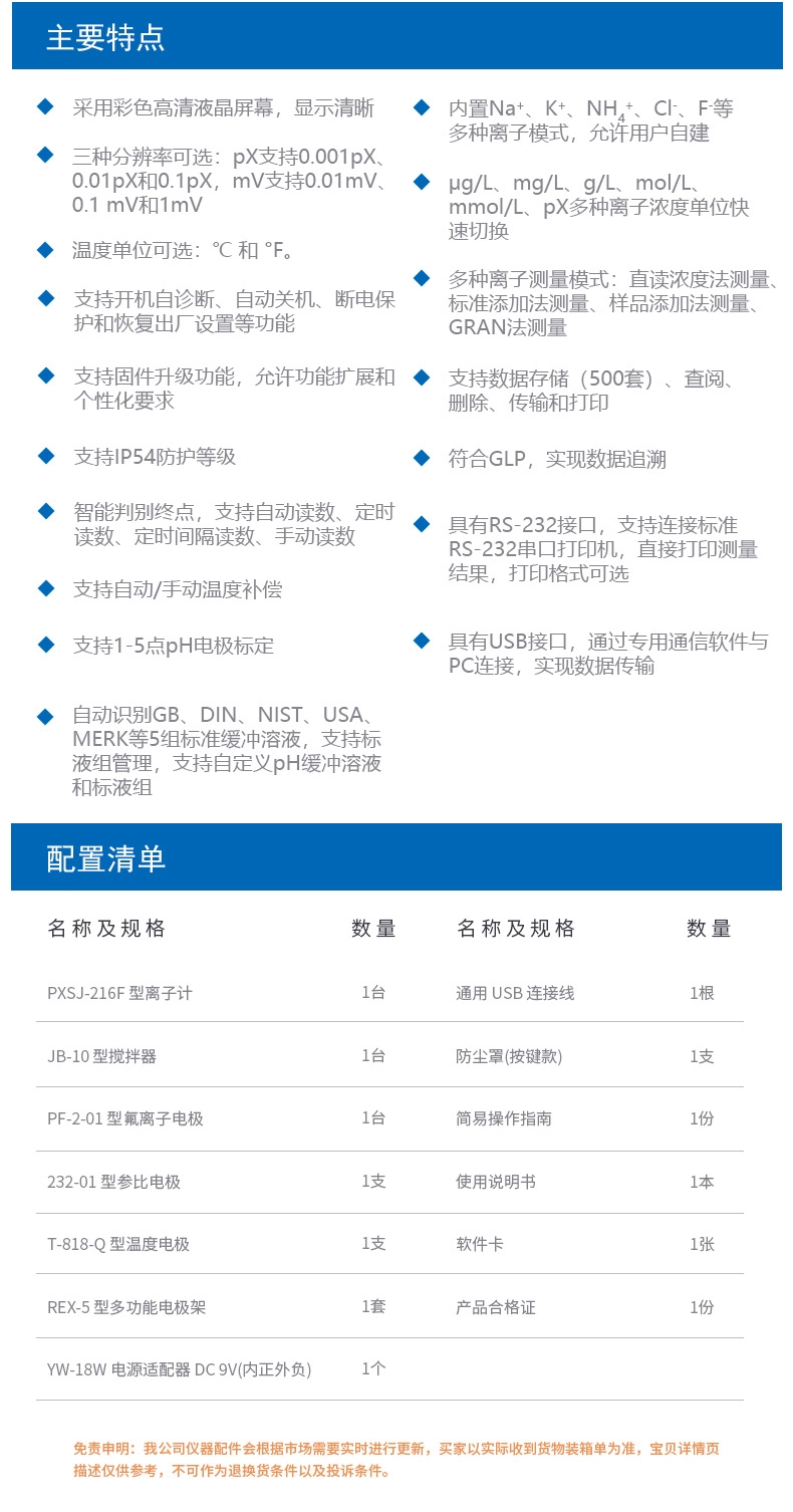 (雷磁) PXSJ-216F型離子計液晶屏幕自動手動溫度補償多種離子模式