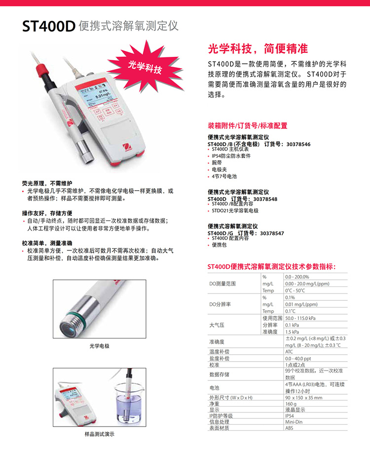 奧豪斯便攜式溶解氧測定儀ST300D/400D防水防塵工業(yè)在線do溶氧儀