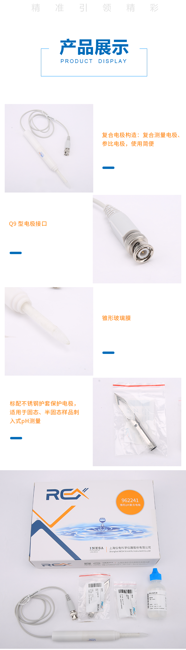 【雷磁】高端ph電極高精度 962241錐形ph復(fù)合電極